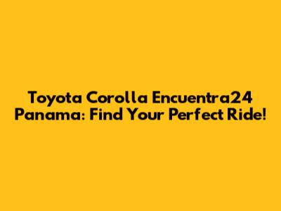 Toyota Corolla Encuentra24 Panama: Find Your Perfect Ride!