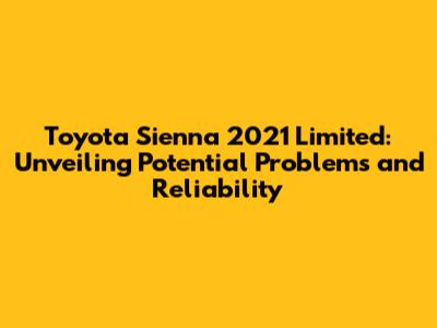 Hey guys! Let's dive into the Toyota Sienna 2021 Limited, a popular minivan known for its comfort, features, and hybrid powertrain. While it's generally a reliable vehicle, like any car, it has its share of potential issues. So, buckle up as we explore what you need to know about the Sienna 2021 Limited, focusing on common problems and overall reliability.