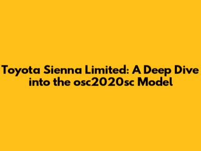 Hey guys! Today, we're diving deep into the osc2020sc Toyota Sienna Limited. This minivan is known for its luxury, comfort, and a whole bunch of features that make family life easier. If you're considering buying one or just curious about what this model offers, you're in the right place. Let's break down everything that makes the osc2020sc Sienna Limited stand out. This vehicle isn't just a way to get from point A to point B; it's a mobile command center designed with families in mind. With a plethora of features aimed at maximizing comfort, convenience, and safety, the osc2020sc Toyota Sienna Limited presents a compelling option for those in the market for a minivan. From its plush interior and advanced technology to its smooth ride and ample cargo space, it's easy to see why this model has garnered so much attention. But what truly sets it apart from the competition? Is it the intuitive infotainment system, the robust suite of safety features, or perhaps the sheer versatility of its seating configurations? Let's peel back the layers and explore the details that make the osc2020sc Toyota Sienna Limited a standout choice in its class. We'll examine everything from its performance and fuel efficiency to its interior design and available options, providing you with a comprehensive overview of what this vehicle has to offer. So buckle up and get ready for an in-depth exploration of the osc2020sc Toyota Sienna Limited – a minivan that's redefining family travel.