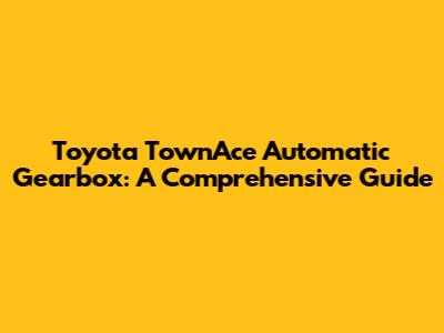 Toyota TownAce Automatic Gearbox: A Comprehensive Guide