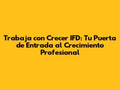 ¿Estás buscando una oportunidad laboral que te permita crecer profesionalmente y hacer una diferencia? ¡Crecer IFD podría ser el lugar perfecto para ti! En este artículo, exploraremos las emocionantes oportunidades de empleo que ofrece Crecer IFD, una institución comprometida con el desarrollo y el bienestar de sus colaboradores y la sociedad en general. Desde sus inicios, Crecer IFD se ha destacado por su enfoque en la inclusión financiera y el apoyo a emprendedores y pequeñas empresas. Si te apasiona el mundo de las finanzas, el desarrollo comunitario y buscas un ambiente de trabajo dinámico y gratificante, sigue leyendo. ¡Descubre cómo puedes unirte al equipo de Crecer IFD y empezar a construir tu futuro hoy mismo!