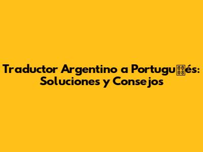 Traductor Argentino A Portugués: Soluciones Y Consejos