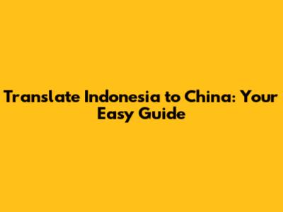 Translate Indonesia To China: Your Easy Guide