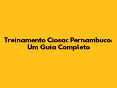 Treinamento Ciosac Pernambuco: Tudo O Que Você Precisa Saber