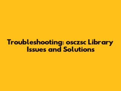 Troubleshooting: Osczsc Library Issues And Solutions
