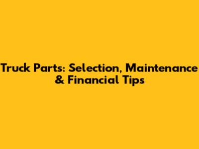 Truck Parts: Selection, Maintenance & Financial Tips