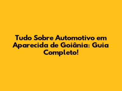 Tudo Sobre Automotivo Em Aparecida De Goiânia: Guia Completo!