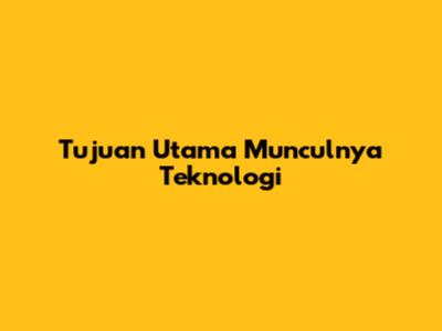 Tujuan Utama Munculnya Teknologi