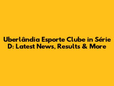 Uberlândia In Série D: Latest News, Results & More