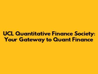 UCL Quantitative Finance Society: Your Gateway To Quant Finance