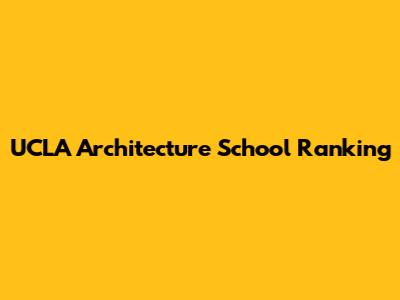 UCLA Architecture: Ranking, Programs, And More
