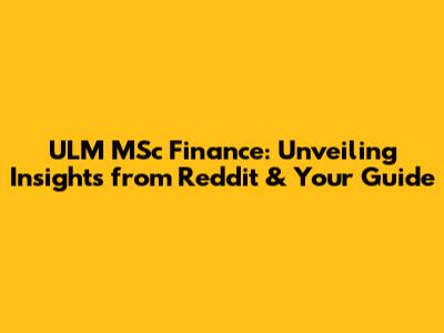 Reddit's Take: What Are People Saying About ULM MSc Finance?