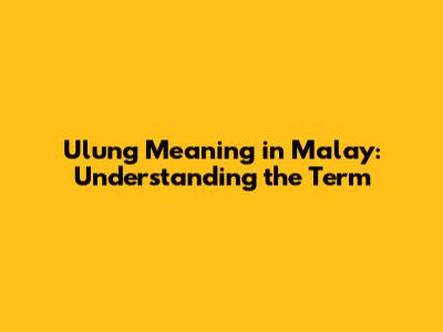Ulung Meaning In Malay: Understanding The Term