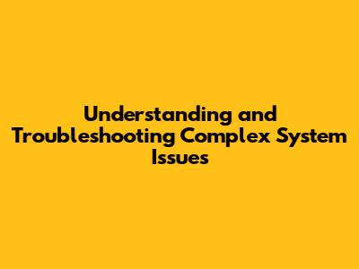 Understanding And Troubleshooting Complex System Issues