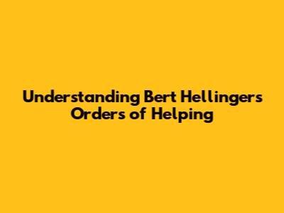 Understanding Bert Hellinger's Orders Of Helping