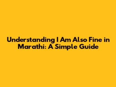 Understanding 'I Am Also Fine' In Marathi: A Simple Guide