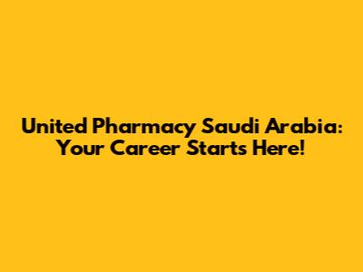 United Pharmacy Saudi Arabia: Your Career Starts Here!