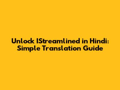Unlock 'IStreamlined' In Hindi: Simple Translation Guide