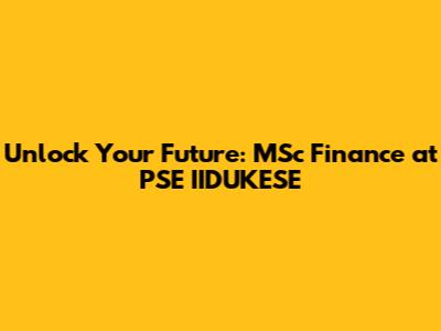 Unlock Your Future: MSc Finance At PSE IIDUKESE