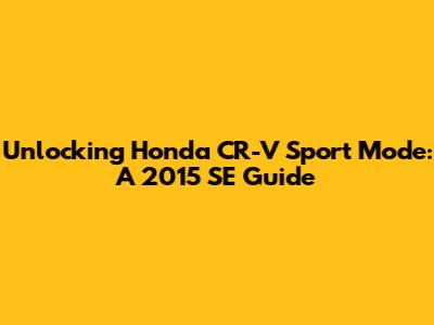 Unlocking Honda CR-V Sport Mode: A 2015 SE Guide