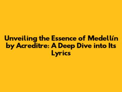 Hey music lovers! Ever gotten lost in a song and felt like it was speaking directly to your soul? That's the power of music, right? Today, we're diving deep into 'Medellín' by Acreditre, a track that's been making waves. We're not just scratching the surface; we're going to dissect the lyrics, explore the emotions, and uncover the story behind the song. So, grab your headphones, get comfy, and let's decode the magic of 'Medellín' together! This analysis aims to provide a detailed understanding of the lyrics of 'Medellín' by Acreditre, breaking down its meaning, themes, and overall impact.