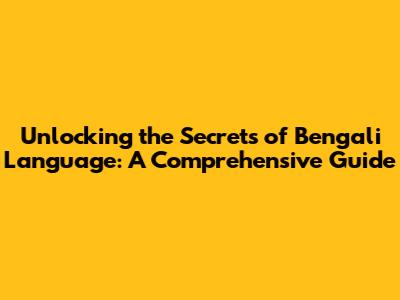 Unlocking The Secrets Of Bengali Language: A Comprehensive Guide