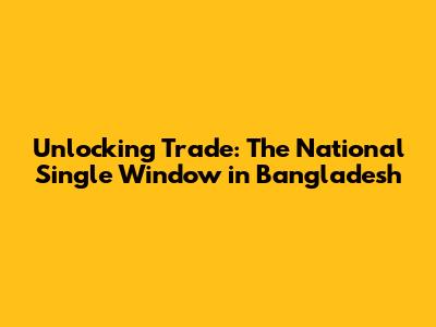 Unlocking Trade: The National Single Window In Bangladesh