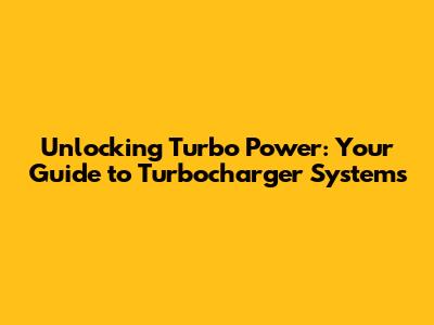 Unlocking Turbo Power: Your Guide To Turbocharger Systems