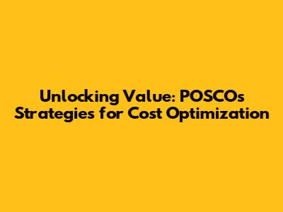 Unlocking Value: POSCO's Strategies For Cost Optimization