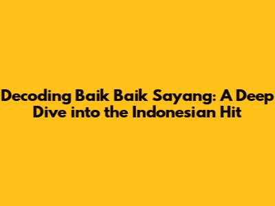 Hey guys! Ever heard a song that just sticks with you? One that you can't help but hum along to, even if you don't fully understand the words? Well, if you're a fan of Indonesian music, you've probably encountered "Baik Baik Sayang." This tune isn't just a catchy melody; it's a window into Indonesian culture, emotions, and the very essence of what it means to say goodbye, and hopefully, see you again soon. Let's dive deep into this song, exploring its meaning, the emotions it evokes, and why it resonated so strongly with so many people. We're going to break it down, line by line, so you can truly appreciate the beauty and depth of "Baik Baik Sayang."