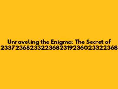 Unraveling The Enigma: The Secret Of 23372368233223682319236023322368