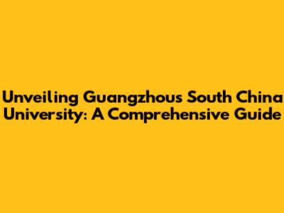 Unveiling Guangzhou's South China University: A Comprehensive Guide
