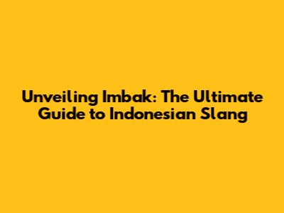 Unveiling 'Imbak': The Ultimate Guide To Indonesian Slang