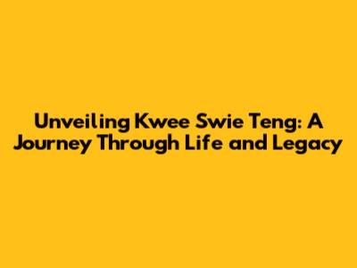 Unveiling Kwee Swie Teng: A Journey Through Life And Legacy