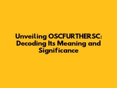 Unveiling OSCFURTHERSC: Decoding Its Meaning And Significance