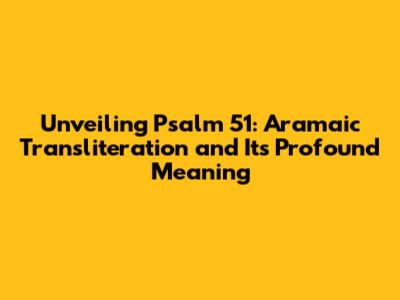 Unveiling Psalm 51: Aramaic Transliteration And Its Profound Meaning