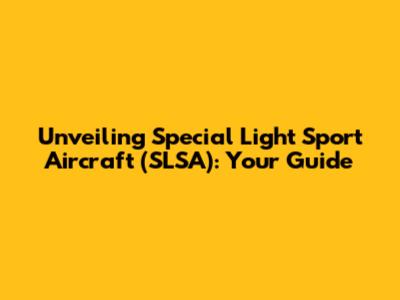 Unveiling Special Light Sport Aircraft (SLSA): Your Guide