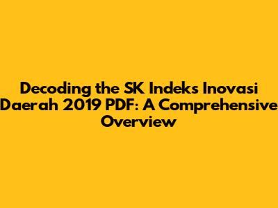 Decoding the SK Indeks Inovasi Daerah 2019 PDF: A Comprehensive Overview