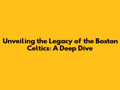 Unveiling The Legacy Of The Boston Celtics: A Deep Dive
