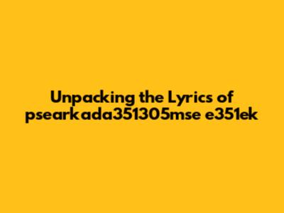 Unveiling The Lyrics: Psearkada351305mse E351ek