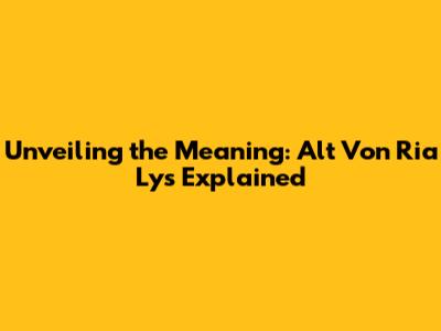 Decoding "Alt Von Ria Lys": A Comprehensive Overview