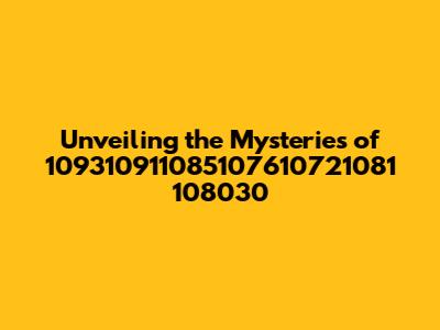 Unveiling The Mysteries Of 109310911085107610721081 108030