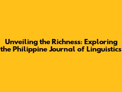 Unveiling The Richness: Exploring The Philippine Journal Of Linguistics