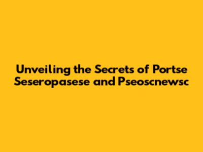 Unveiling The Secrets Of Portse Seseropasese And Pseoscnewsc