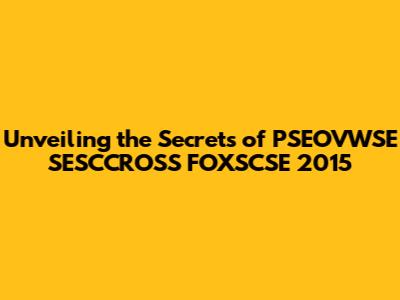 Unveiling The Secrets Of PSEOVWSE SESCCROSS FOXSCSE 2015