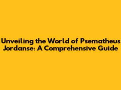 Unveiling The World Of Psematheus Jordanse: A Comprehensive Guide
