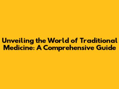 Unveiling The World Of Traditional Medicine: A Comprehensive Guide