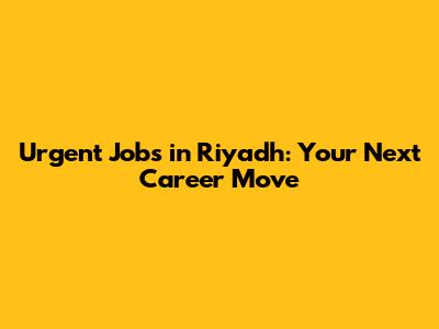 Urgent Jobs in Riyadh: Your Next Career Move