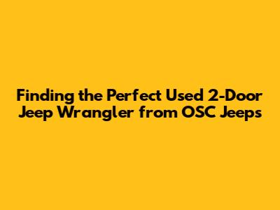 Hey guys! Are you on the hunt for a reliable and rugged used 2-door Jeep Wrangler? You've come to the right place! This iconic vehicle is known for its off-road prowess and open-air freedom, making it a favorite among adventure enthusiasts. When looking for a used Wrangler, especially from dealerships like OSC Jeeps, there are several key factors to consider. In this article, we'll walk you through everything you need to know to make an informed decision and drive away in your dream Jeep.