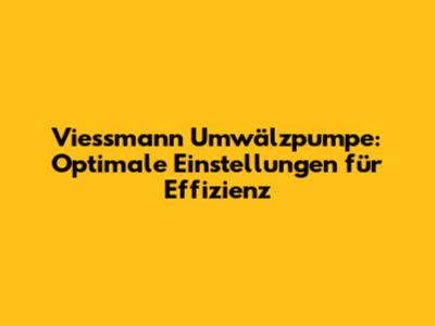 Viessmann Umwälzpumpe: Optimale Einstellungen Für Effizienz
